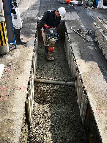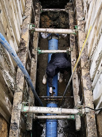 震災によって、異常が生じた下水道管の改修工事になります。